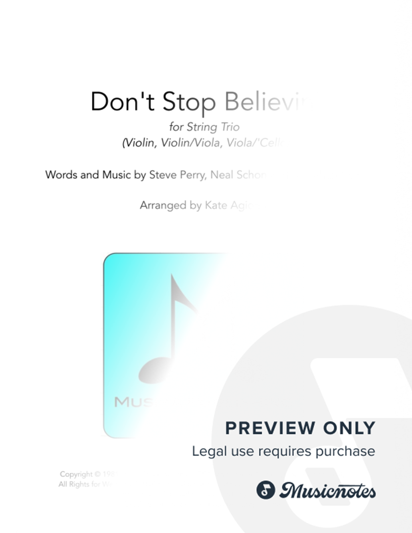 Bring iconic rock energy to your ensemble with this powerful string trio arrangement of Journey’s Don’t Stop Believin’. Arranged for Violin, Violin/Viola and Viola/Cello, this chart captures all the drama, drive, and singable melodies of the original anthem.