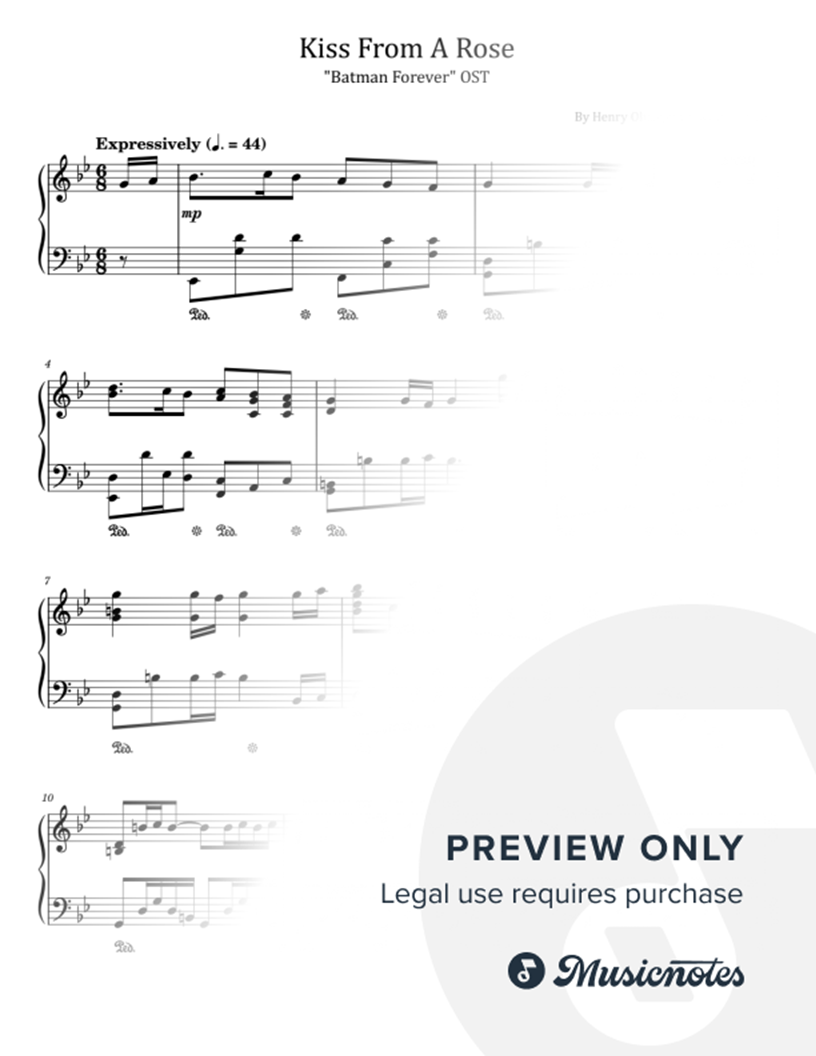 Kiss From A Rose, Seal "Batman Forever" OST, for Piano Solo |