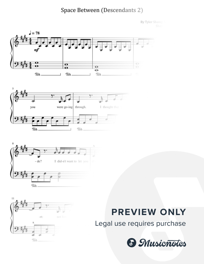 Space Between, from Descendants 2, for Piano Solo With Lyrics |