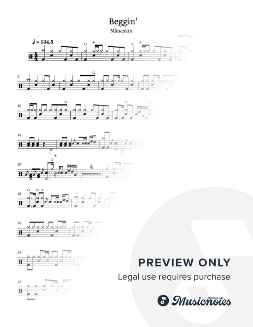 Beggin', Måneskin, for Drum group Solo, Sheet Music 3 Pages.