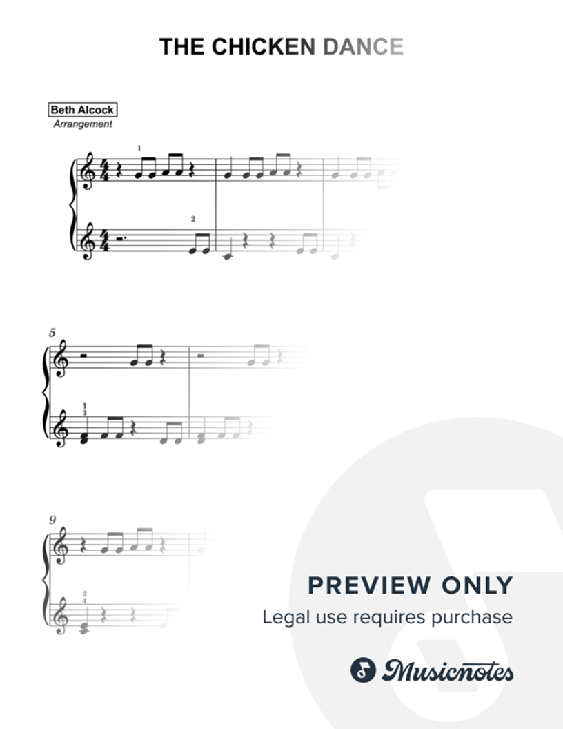 Get ready for some fun with "The Chicken Dance"! This easy arrangement of the classic party tune is great for kids’ events, recitals, or just for a laugh. Its catchy melody and playful energy are sure to bring smiles to audiences of all ages.