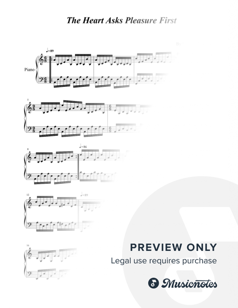 The Heart Asks Pleasure First, for Piano Solo Michael Nyman, Sheet Music 2 Pages.