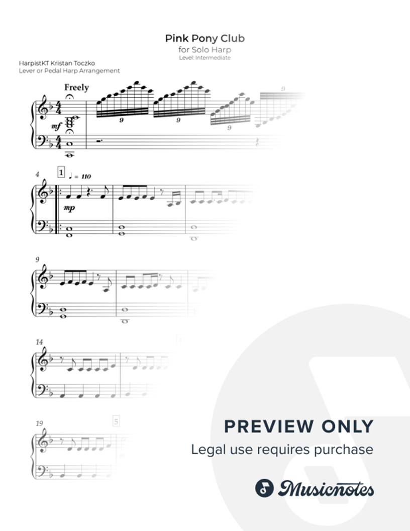 Playable on both lever or pedal harp.
