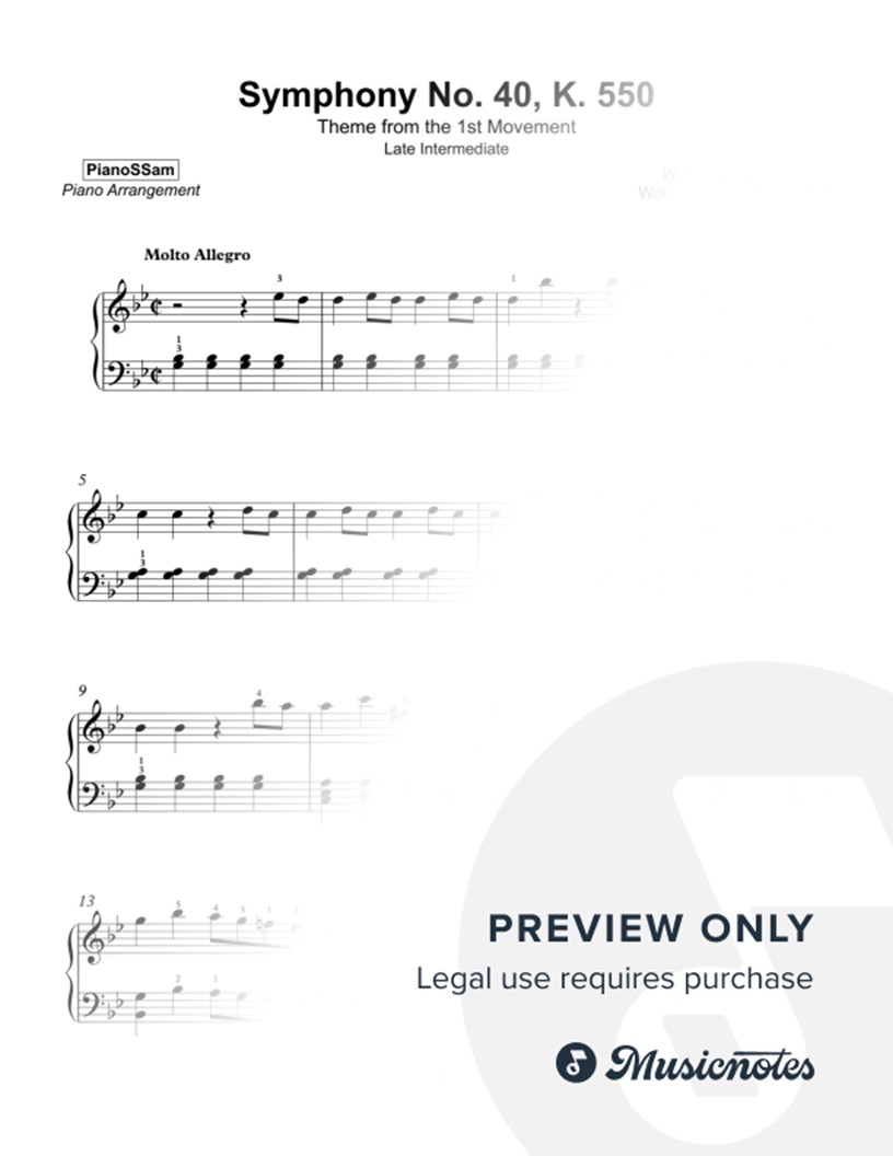 Theme from Mozart Symphony No. 40 in G minor 1st Mvt. [late intermediate] |