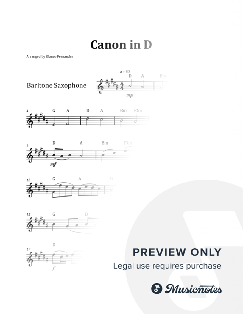 Pachelbel's Canon | BARITONE SAX SOLO (with Chords) Sheet music for Pachelbel's Canon, arranged for Baritone Saxophone Solo (with chords). It includes the solo part, perfect for music students, weddings, and concerts.