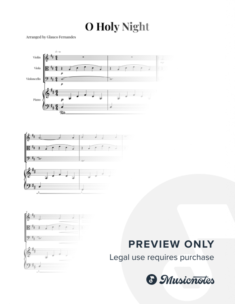 O Holy Night | STRING TRIO & PIANO (PIANO QUARTET) A special version of the Christmas classic O Holy Night, popularized by Mariah Carey, arranged for STRING TRIO (Violin, Viola, and Cello) & PIANO. The sheet music includes the full score and individual parts.