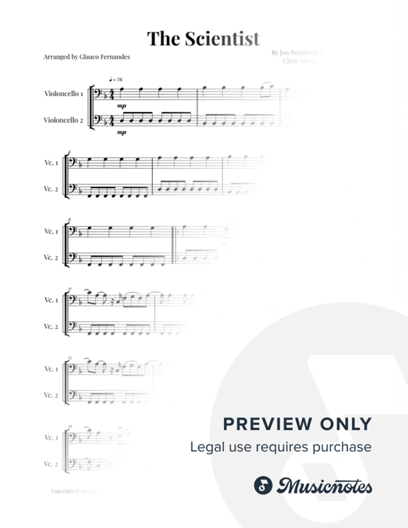 The Scientist - Coldplay | CELLO DUET Sheet music for the iconic hit The Scientist by COLDPLAY, arranged for intermediate level CELLO DUET. Includes full score and individual parts, perfect for music students, modern repertoire, and personal enjoyment.
