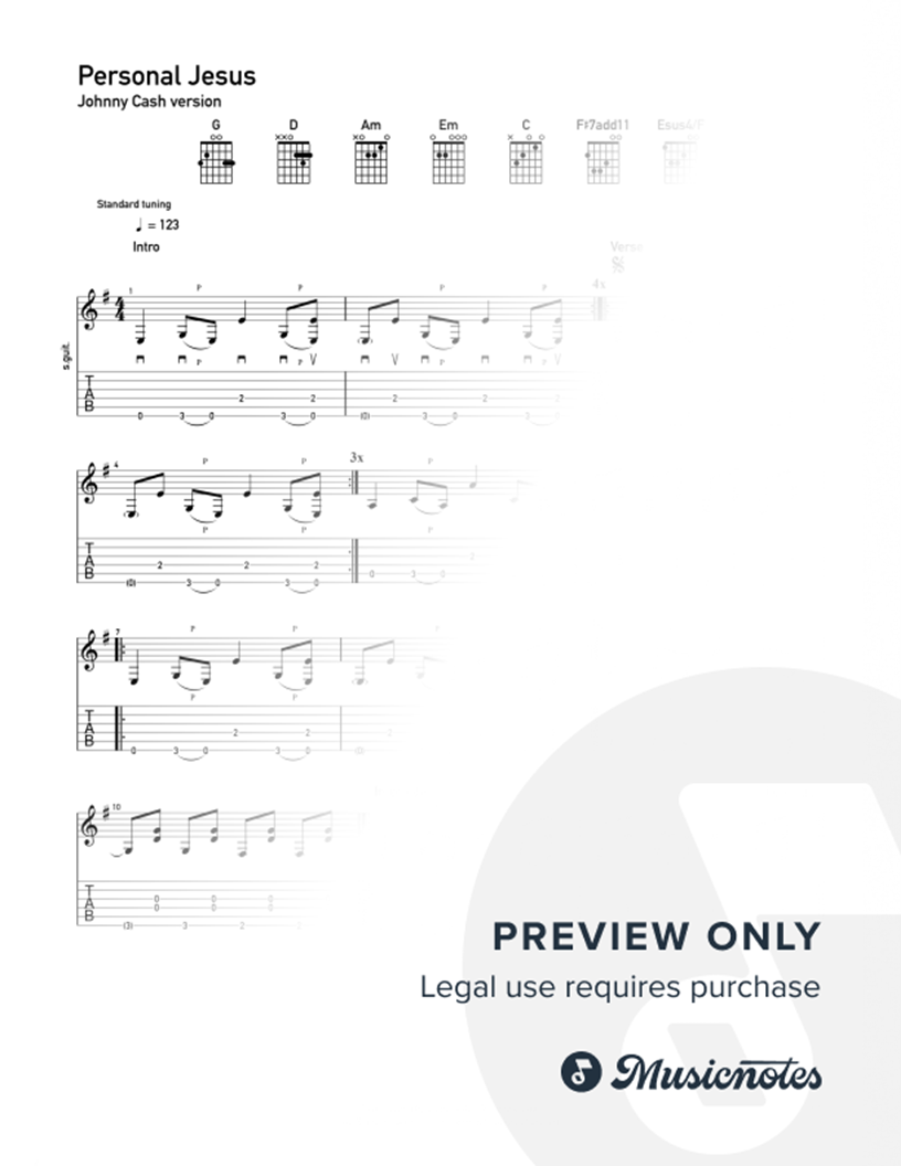 Complete detailed song tab, the way Johnny Cash plays it.