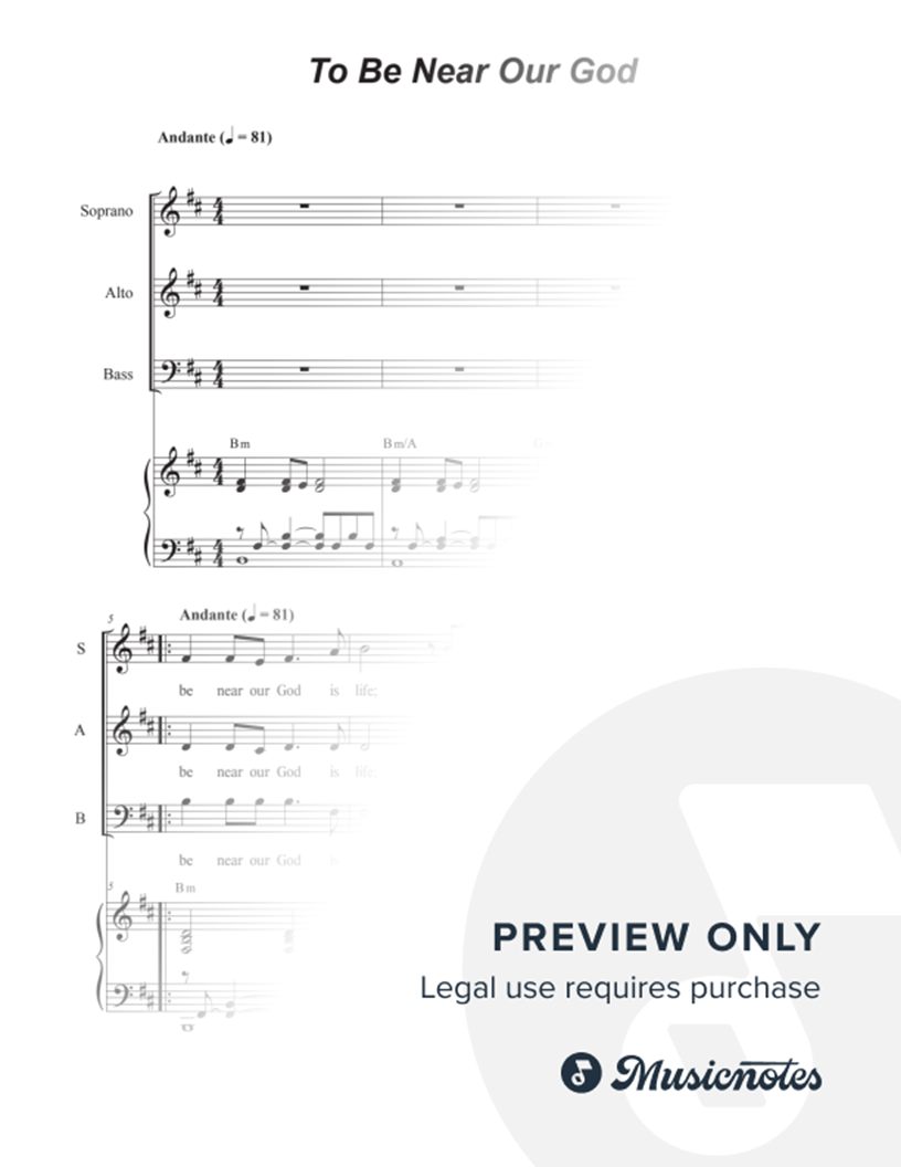 A quiet, contemplative piece inspired by Psalm 73:28—“To be near God is my happiness.” Written in a poetic and prayerful style, the song expresses trust in God’s constant presence even in times of fear, loss, or spiritual darkness. Price includes a 5-copy limit print license.