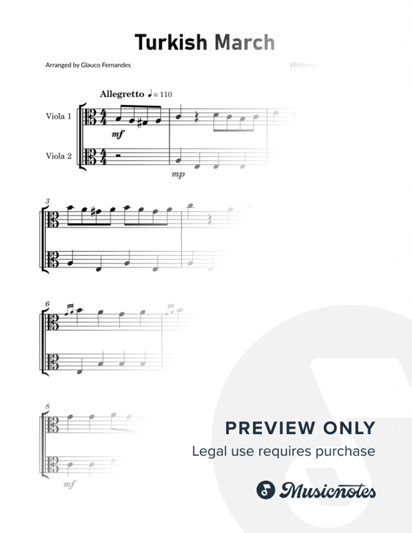 Rondo Alla Turca (Turkish March) - Mozart | EASY VIOLA DUET Easy instrumental arrangement for two Violas. Clear and accessible version for duet performance. Includes score and parts.