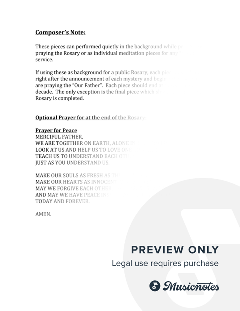 The Rosary is a complete collection of piano meditations on the mysteries of the Rosary, written to support prayer, reflection, and quiet devotion.