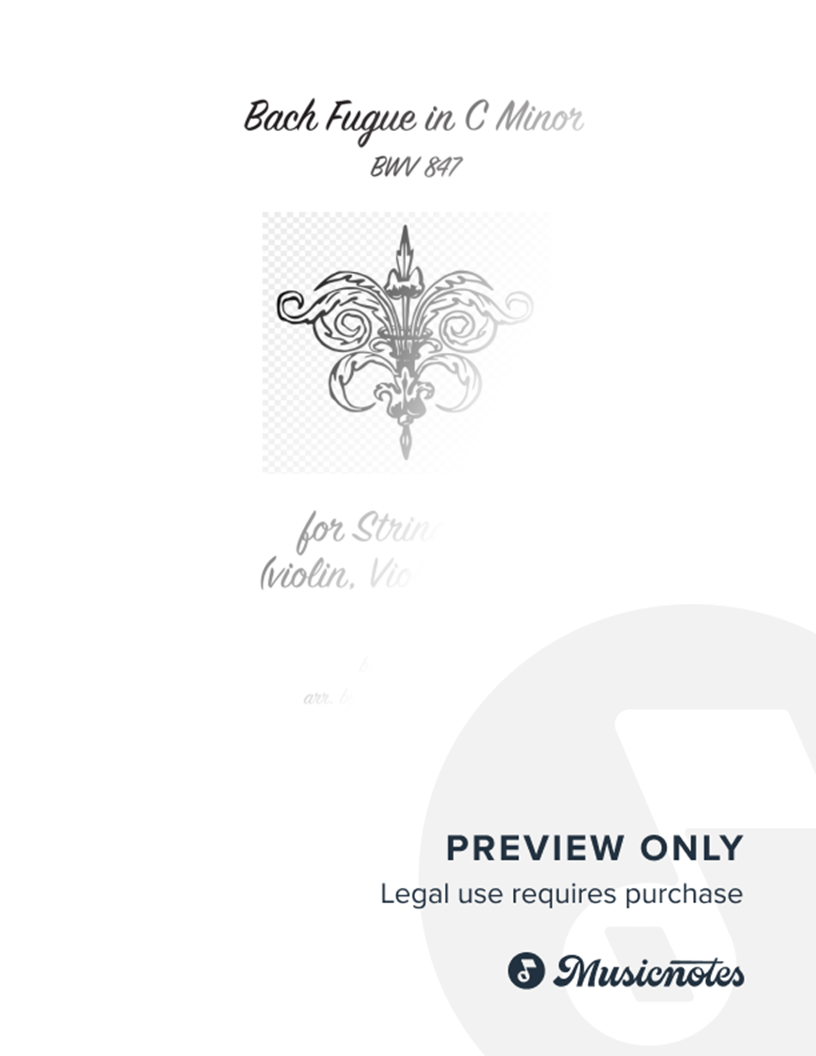Bach's Fugue in C minor (BWV 847) is arranged as a String Trio (Violin, Viola, Cello). While the original from the WTC is scored as a Piano Solo, this arrangement features a prominent exposition of each instrument. Perfect for a competition, recital or contest!