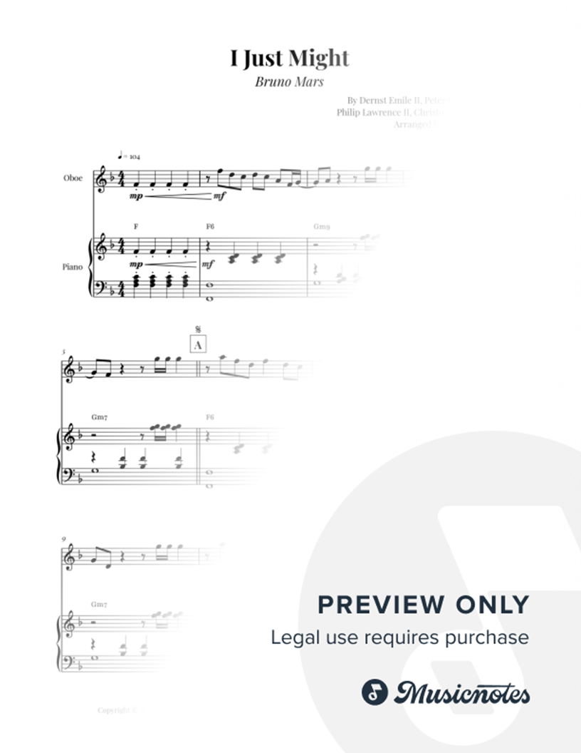 I Just Might - Bruno Mars | EASY OBOE & PIANO (with Chords) Soulful easy/intermediate arrangement for oboe and piano. Includes score and parts with chords. Ideal for performers seeking a full, supportive accompaniment and modern groove.