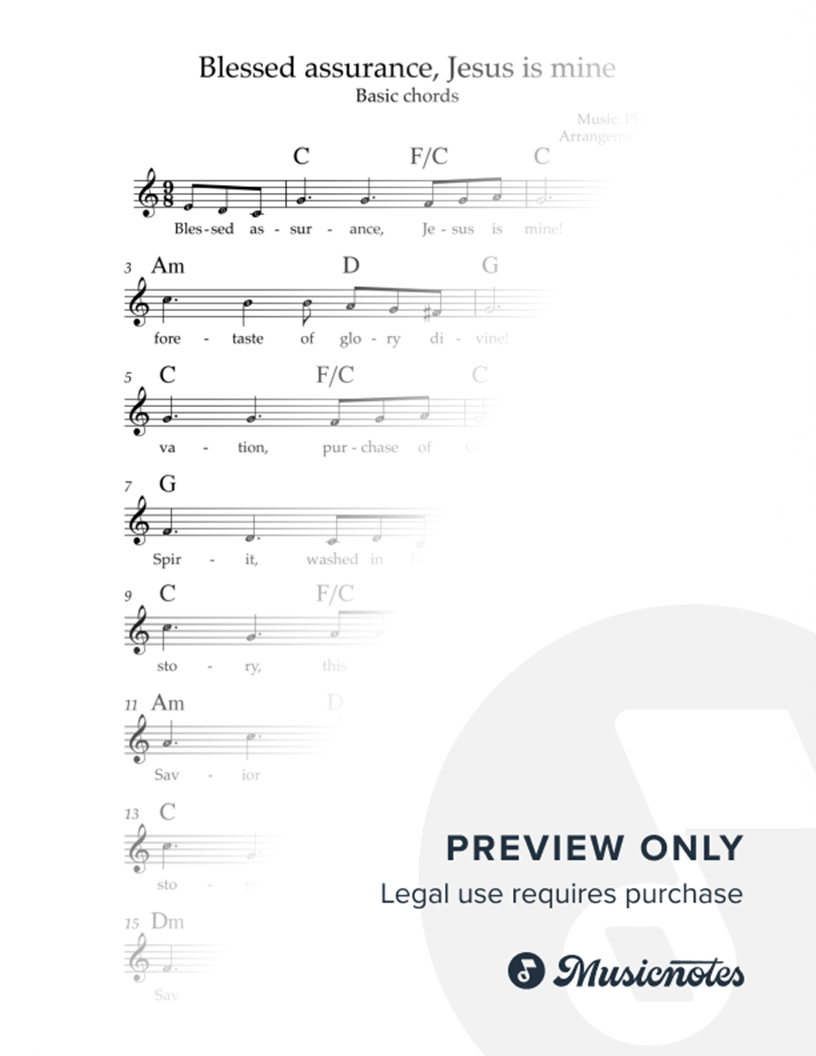 Blessed assurance, Jesus is mine - basic chords (with lyrics) |