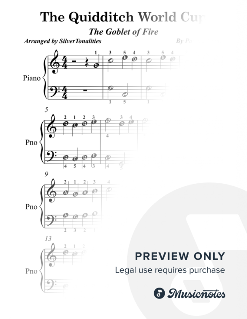 From the 2005 Soundtrack to "Harry Potter and the Goblet of Fire" Easy Piano Arrangement A SilverTonalities Arrangement! Easy Note Style Sheet Music Letter Names of Notes embedded in each Notehead!