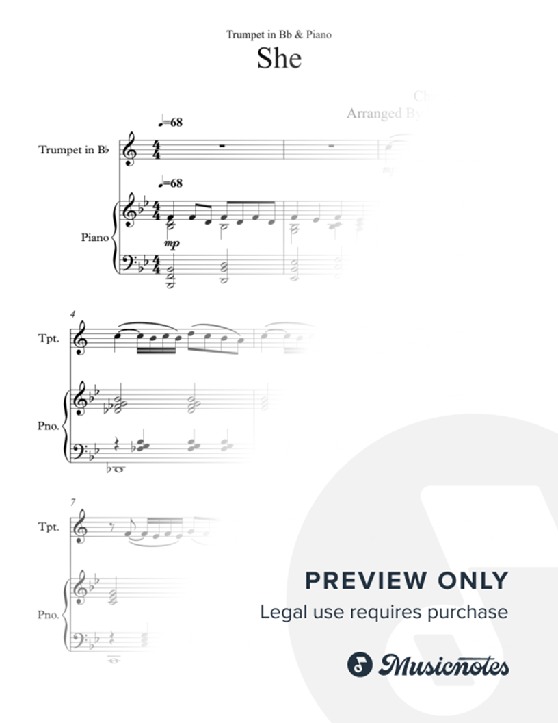 Lyrical Trumpet Part: The melody is set in a resonant and expressive register, allowing for the trumpet’s signature warmth and beautiful legato phrasing. Supportive Piano Accompaniment: A rich and elegant piano part that provides a perfect harmonic foundation for the soloist.