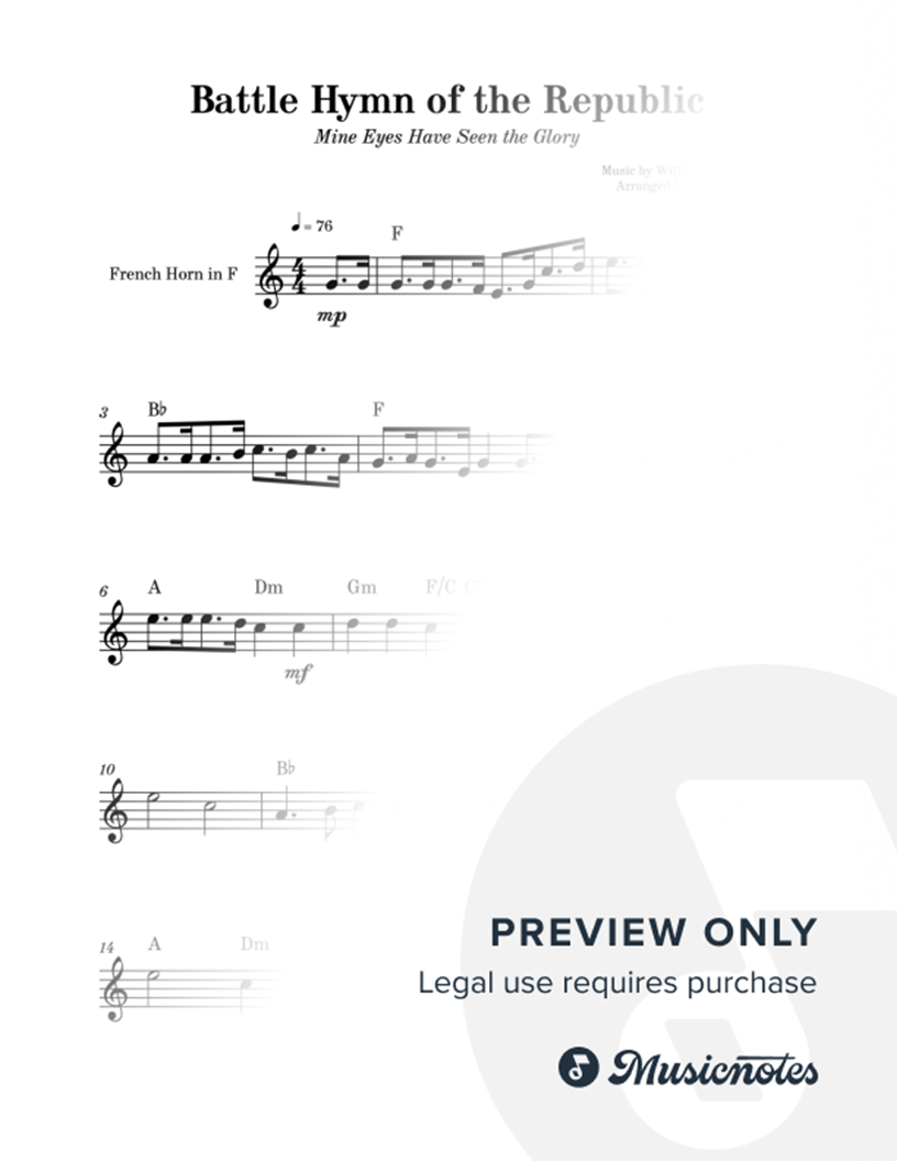 Battle Hymn of the Republic | FRENCH HORN with Chords Sheet music for French Horn with Chords. Ideal for weddings, events, students, and teachers. Intermediate level. This FRENCH HORN with Chords offers harmonic flexibility for performers.