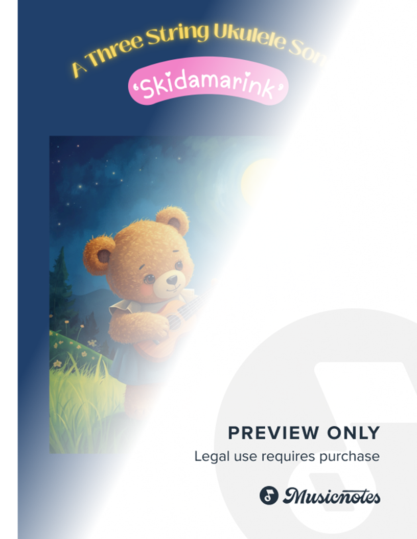 An easy arrangement of 'Skidamarink' for ukulele. The melody is played using only three strings. In standard notation and TAB, with fingering and picking suggestions notated in the score for ease of learning. Chords and chord diagrams included for teacher accompaniment purposes.