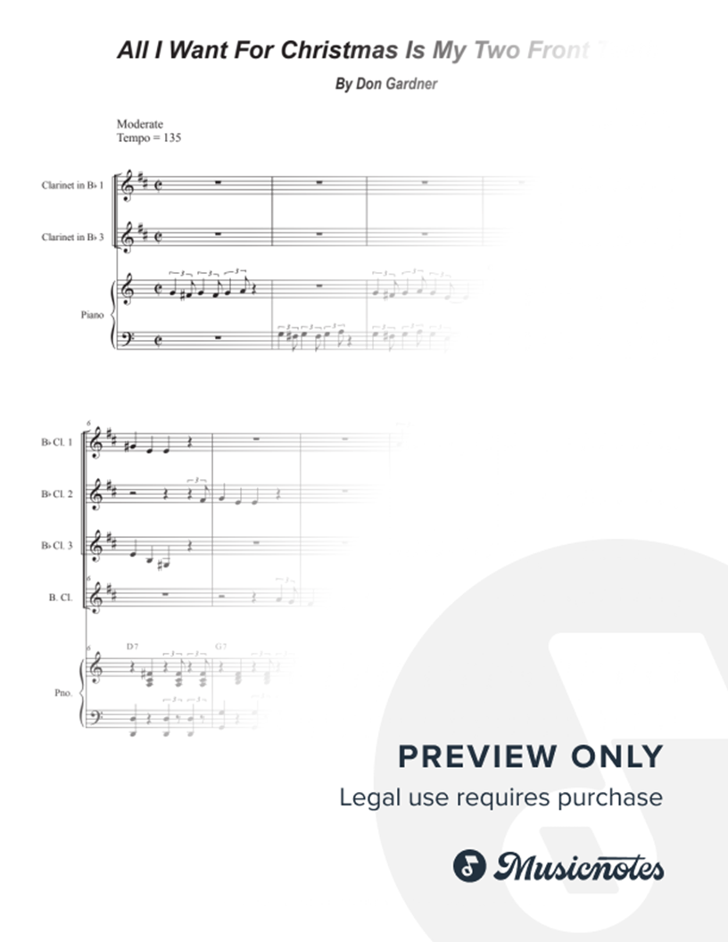 All I Want for Christmas Is My Two Front Teeth (Clarinet Choir and Piano) |