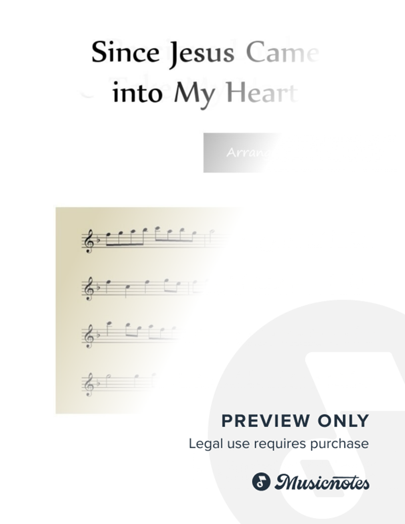 “Since Jesus Came into My Heart” flute duet sheet music. Arranged for late beginners by L. Auberjeunois. Download includes a two-page score and flute parts. This uplifting arrangement is ideal for practicing rhythm and phrasing or performing in church services. Published by Flute Files Publishing.