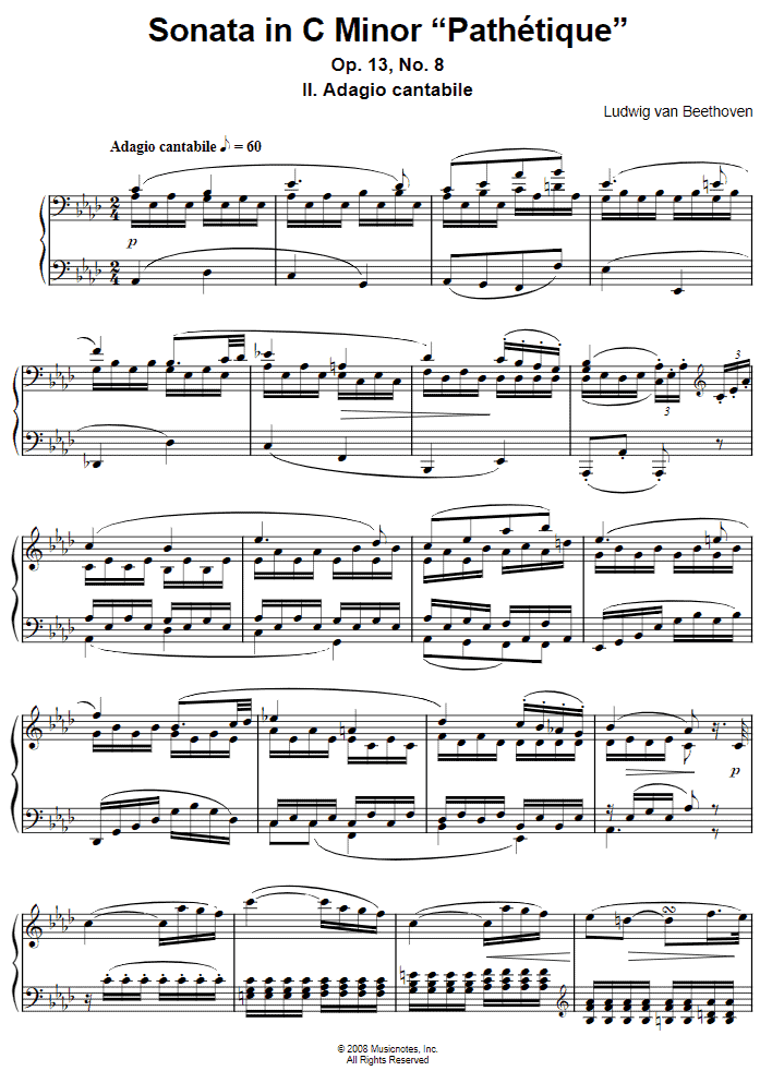 For example, this version of Beethoven’s “Pathétique Sonata” has exactly 4 measures per line on the first page. It would make a lot of sense to practice this piece line by line or in 2 line sections because there is a cadence at the end of each line; every 2 lines makes a complete phrase.