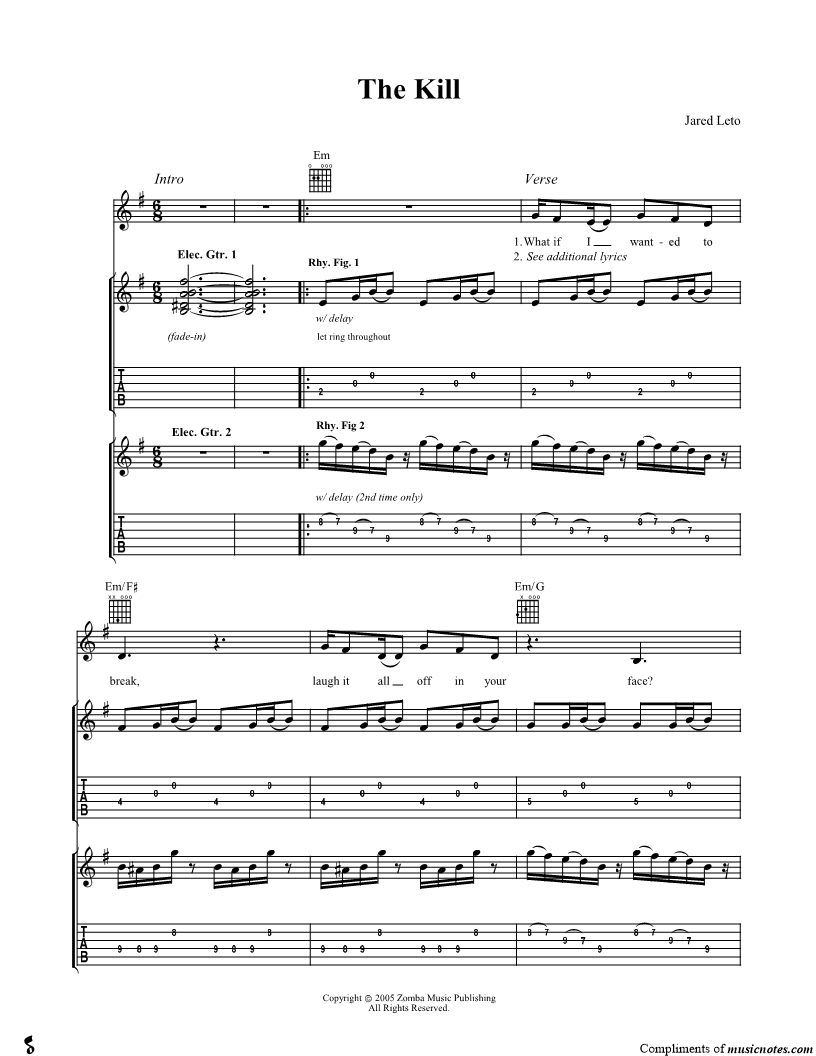 Voice, range: B3-D6 Guitar 1, range: E3-B5 Guitar 2, range: E3-G6 Guitar 3, range: B3-B5 Backup Vocals | |