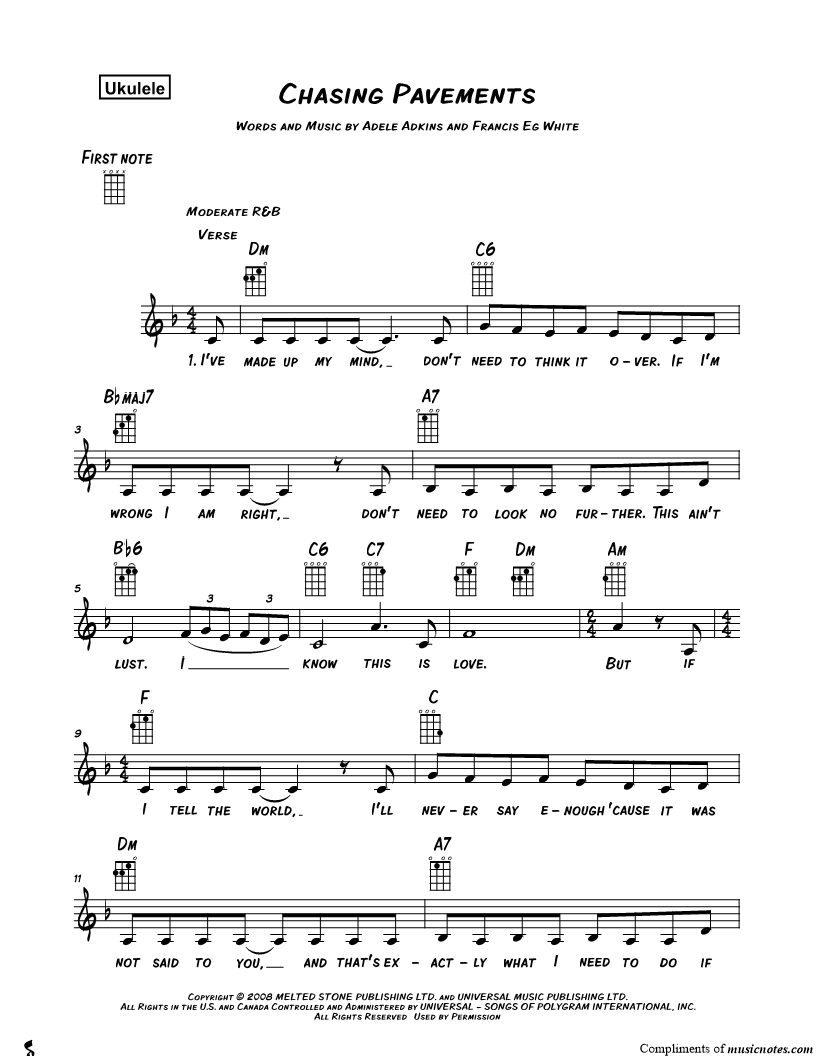 Ukulele/Vocal/Chords Leadsheet |