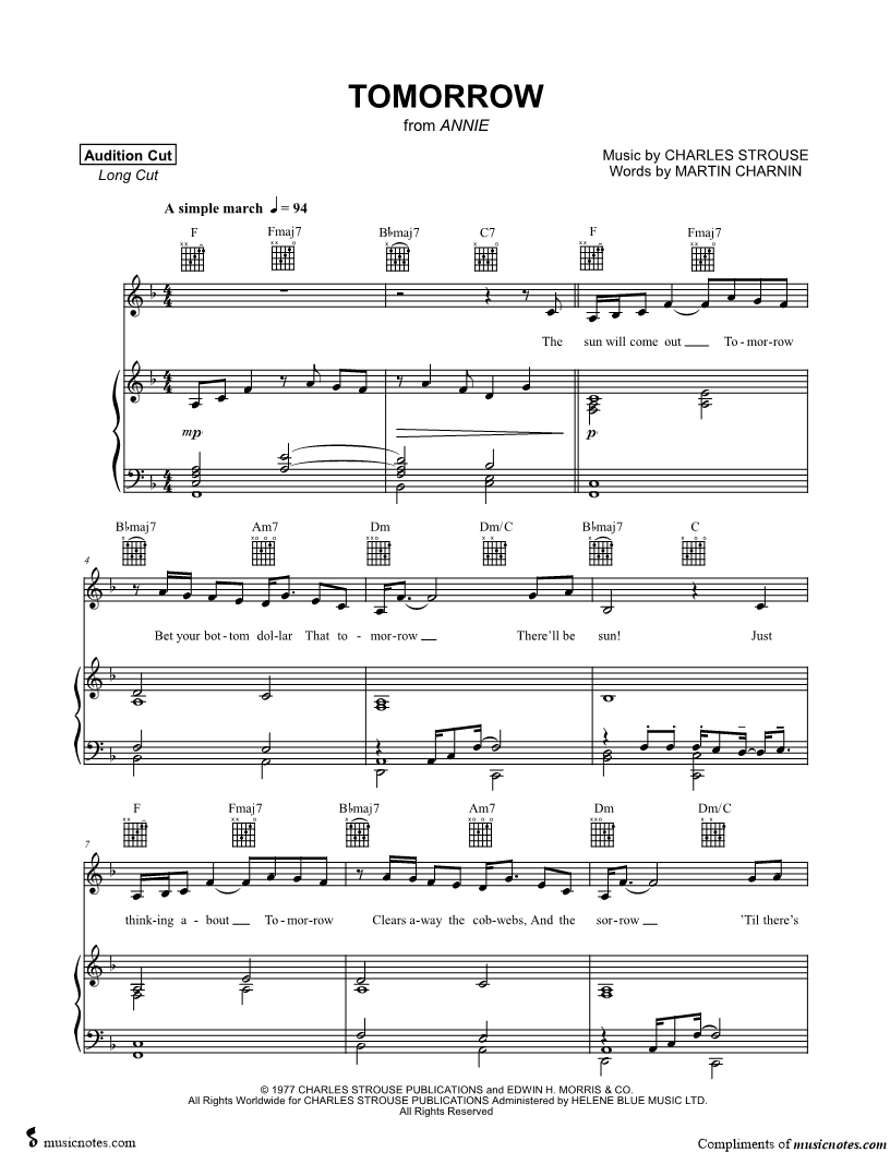 The sun will come out tomorrow bet your bottom dollar that tomorrow there'll be sun! |