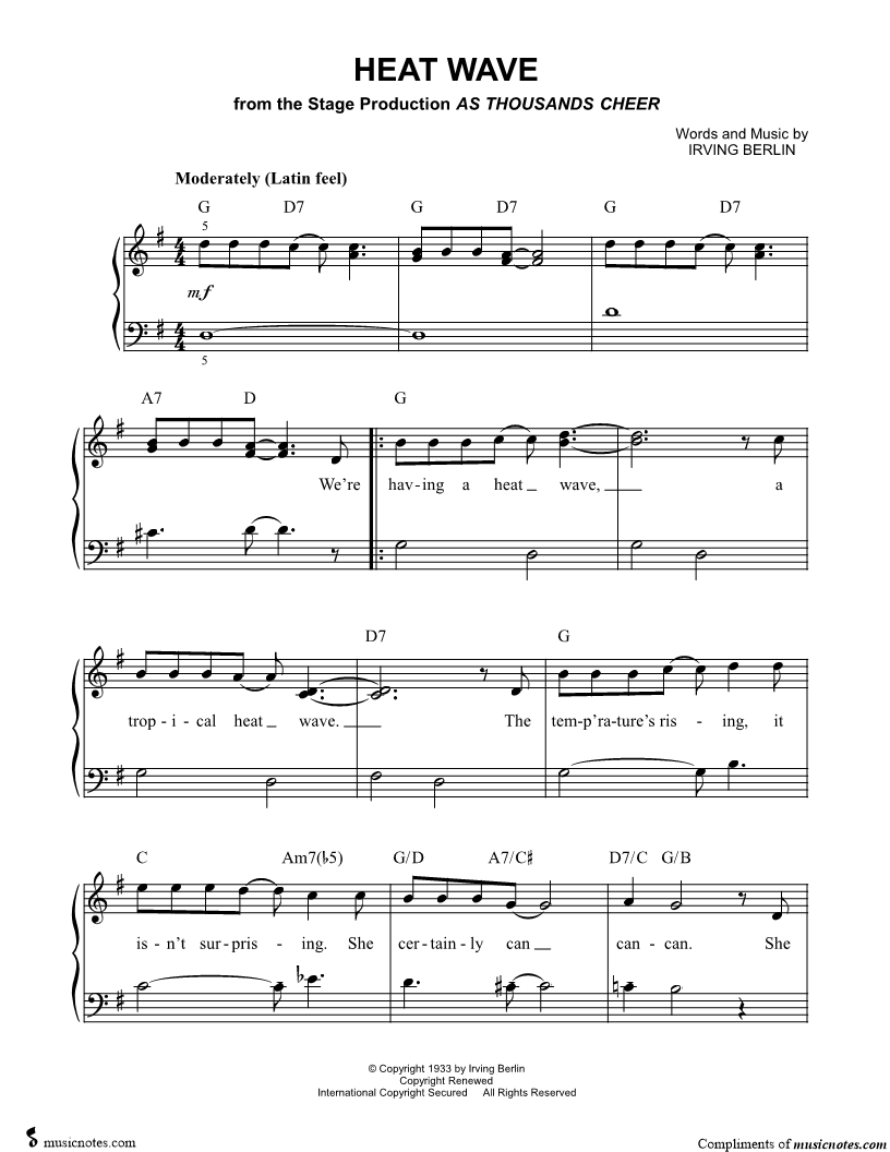 We're having a heat wave, a tropical heat wave. |