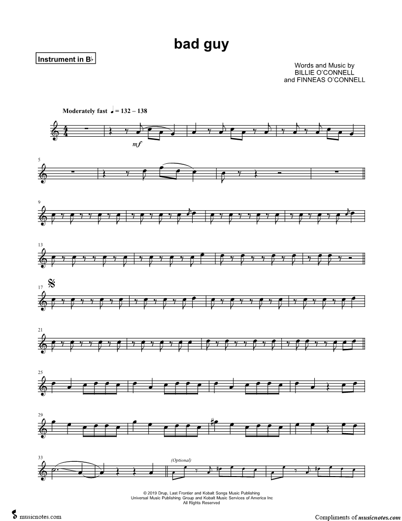 Bb Instrument, range: G4-G#5 (Trumpet, Clarinet, Tenor Saxophone or Soprano Saxophone) | |