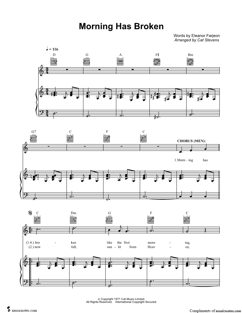 Morning has broken like the first morning, blackbird has spoken like the first bird. |