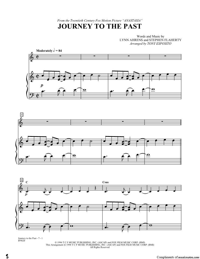 1. Journey To the Past (click here to preview and play this piece) Composers: Lyricists: Scored For:Solo & Accompaniment Instruments:Piano Accompaniment and Any Instrument Number of pages:7 Click here to purchase this piece separately for $4.99 |