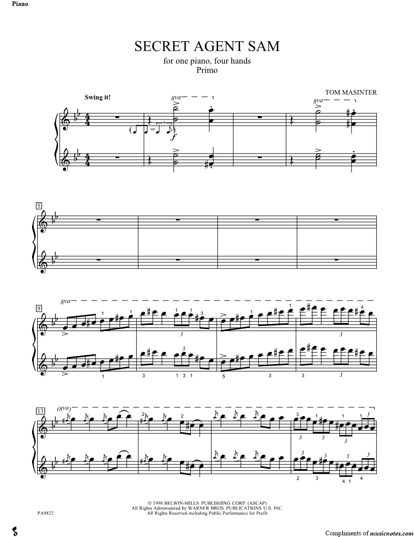 2. Secret Agent Sam (click here to preview and play this piece) Composer: Scored For:Instrumental Part Instrument:Piano Number of pages:5 Click here to purchase this piece separately for $4.99 |