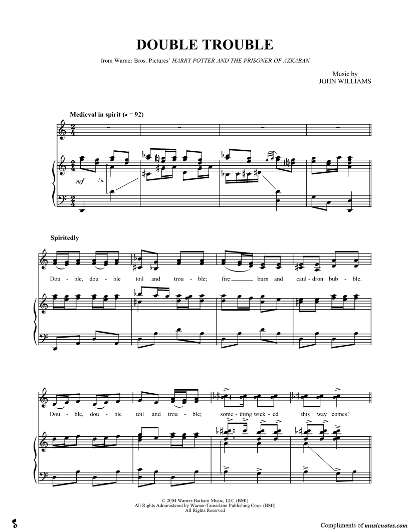 1. Double Trouble (click here to preview and play this piece) Composer: Scored For:Piano/Vocal Instruments:Piano and Voice, range: A3-D5 Number of pages:5 Click here to purchase this piece separately for $5.99 |