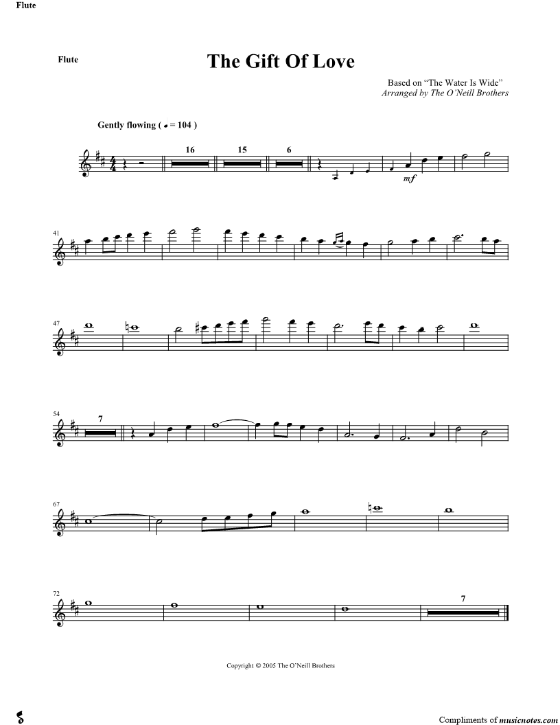 1. The Gift of Love (click here to preview and play this piece) Performer: Composer: Scored For:Instrumental Part Instrument:Flute, range: A3-G6 Number of pages:1 Click here to purchase this piece separately for $4.99 |