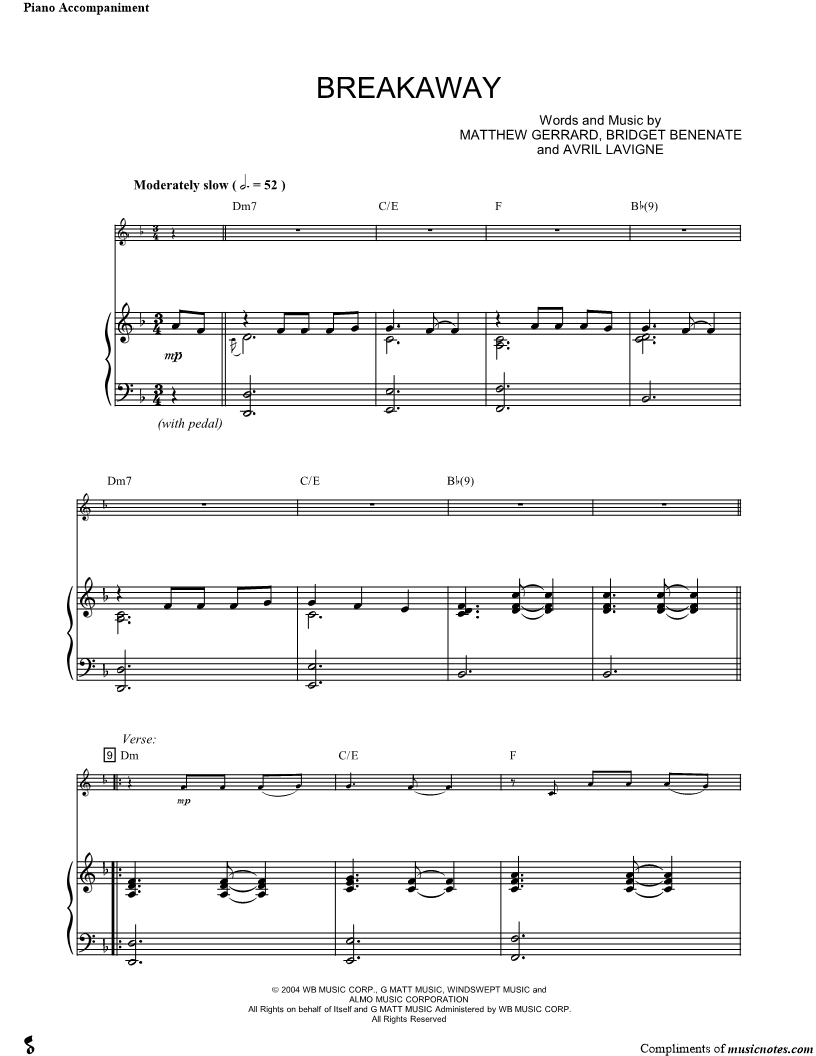 1. Breakaway (click here to preview and play this piece) Performer: Composers: Lyricists: Scored For:Solo & Accompaniment Instrument:Piano Accompaniment Number of pages:6 Click here to purchase this piece separately for $4.99 |