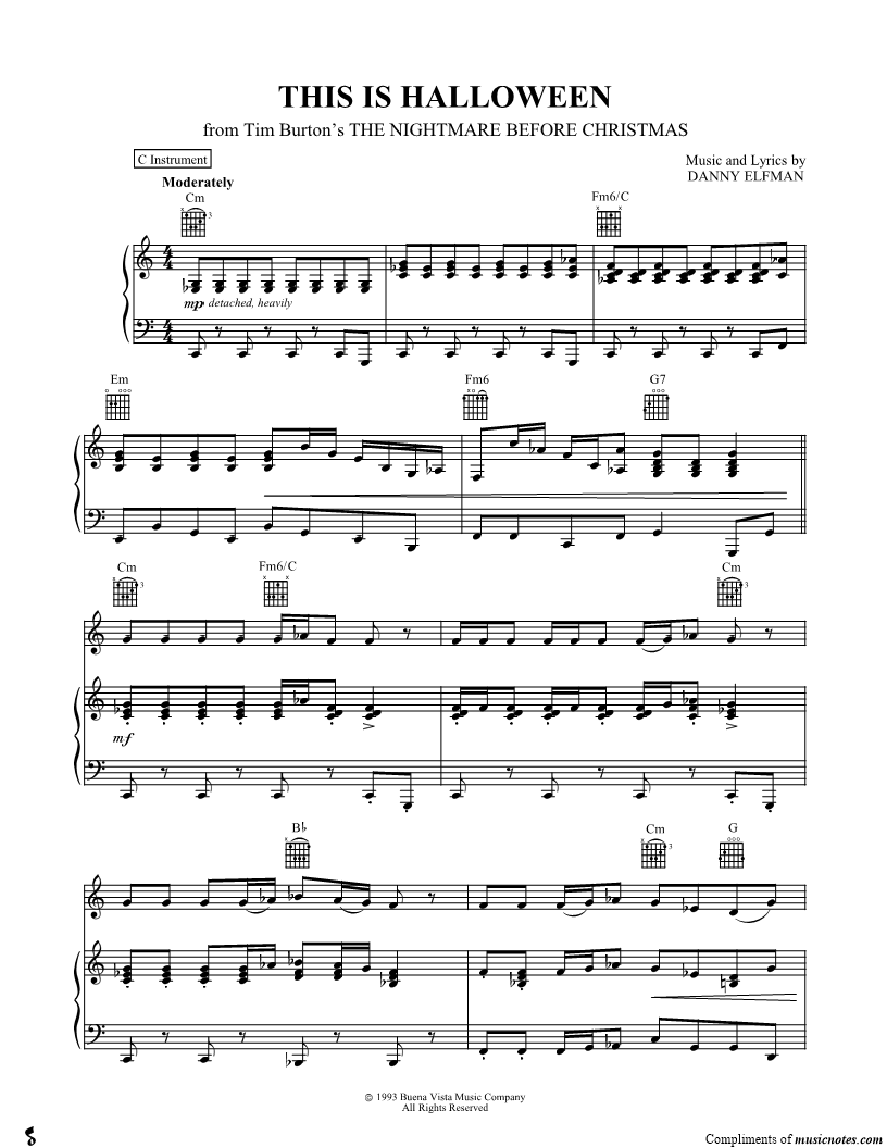 1. This Is Halloween - Piano Accompaniment (click here to preview and play this piece) Composer: Lyricist: Scored For:Solo & Accompaniment and Instrumental Part Instruments:Piano Accompaniment and Any Instrument, range: F#3-D#5 Number of pages:8 Click here to purchase this piece separately for $5.99 |