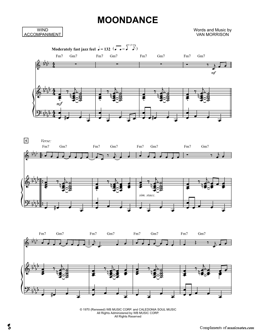 1. Moondance - Piano Accompaniment (Winds) (click here to preview and play this piece) Performer: Composer: Lyricist: Scored For:Solo & Accompaniment and Instrumental Part Instruments:Piano Accompaniment, C Instrument, range: C4-F5, Violin, Oboe, Flute and Recorder Number of pages:4 Click here to purchase this piece separately for $5.99 |