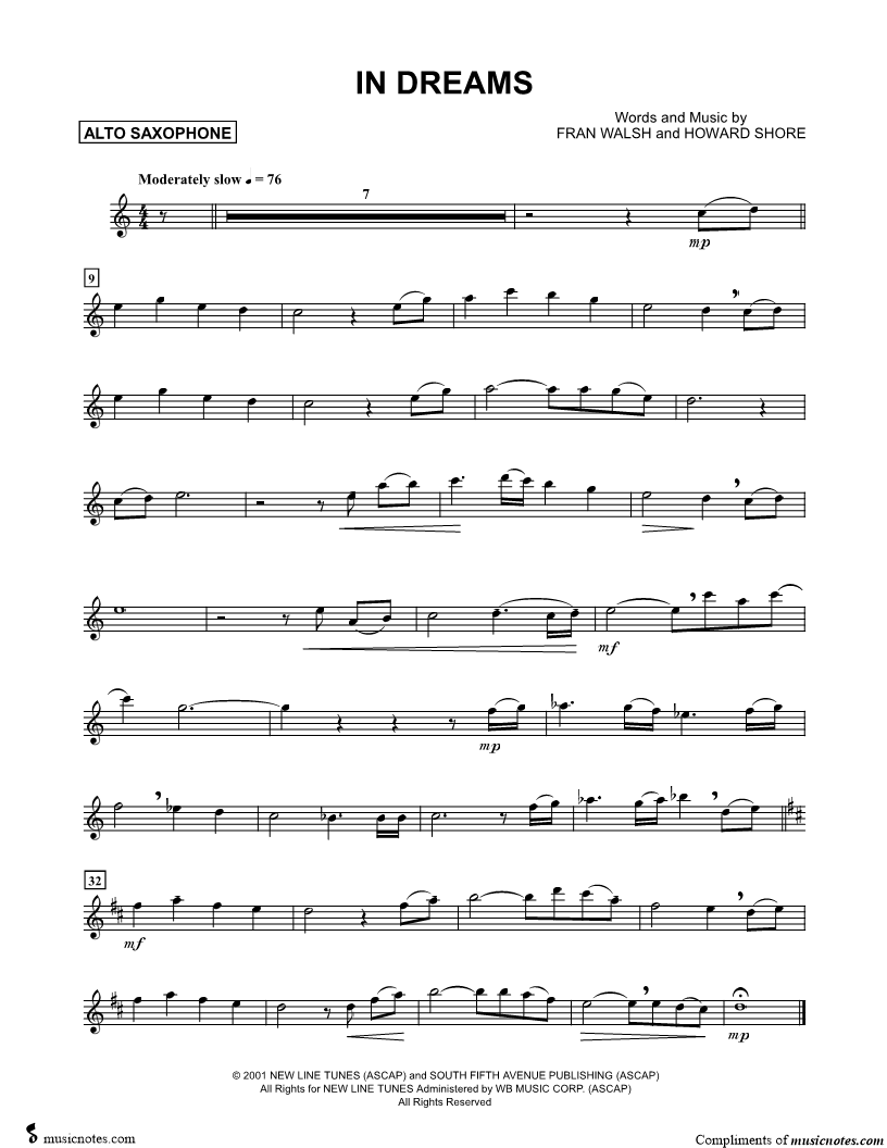 1. In Dreams - Alto Saxophone (click here to preview and play this piece) Composers: Lyricists: Scored For:Instrumental Solo and Instrumental Part Instrument:Alto Saxophone, range: A4-D6 Number of pages:1 Click here to purchase this piece separately for $4.99 |