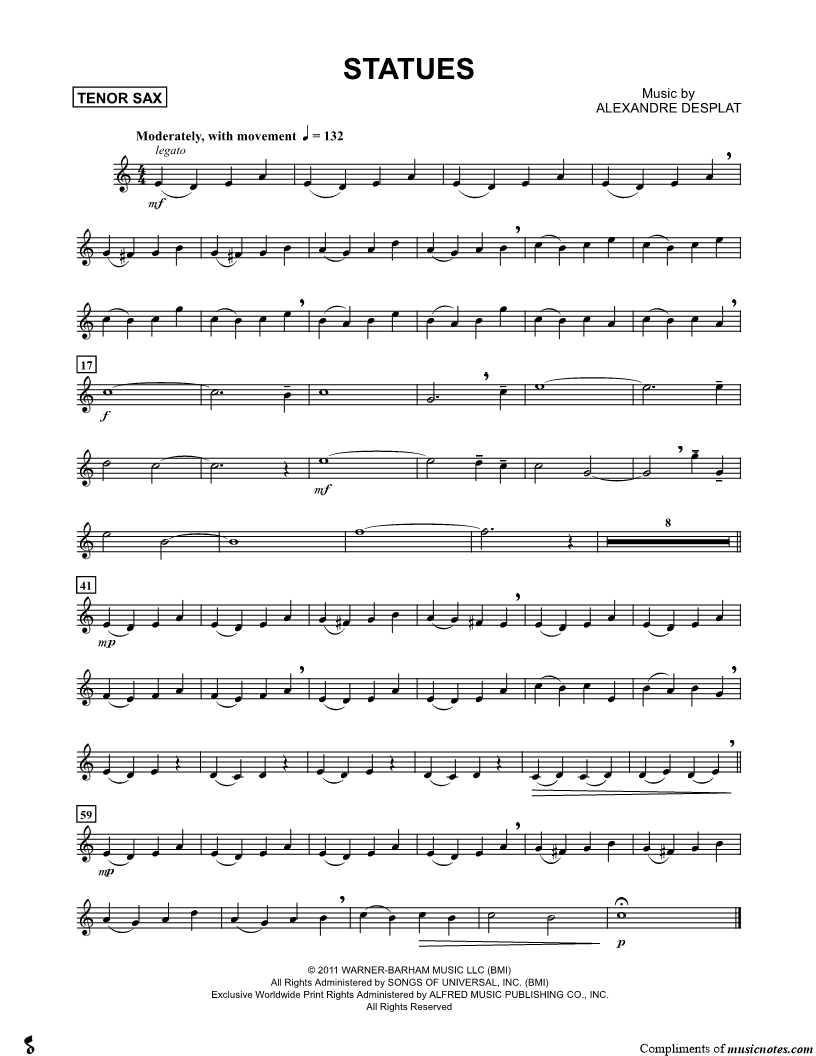 1. Statues - Tenor Saxophone (click here to preview and play this piece) Composer: Scored For:Instrumental Part and Instrumental Solo Instrument:Tenor Saxophone, range: C4-G5 Number of pages:1 Click here to purchase this piece separately for $4.99 |