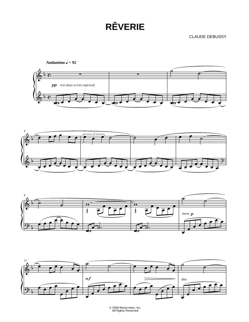 1. Rêverie (click here to preview and play this piece) Composer: Scored For:Instrumental Solo Instrument:Piano Number of pages:5 Click here to purchase this piece separately for $5.99 |