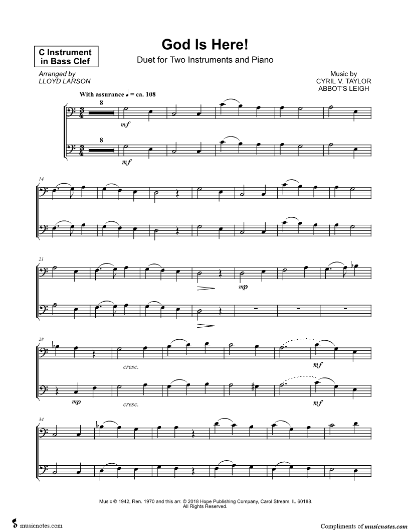 Collection: God Is Here! - Bass Clef Instrument Duet & Piano |