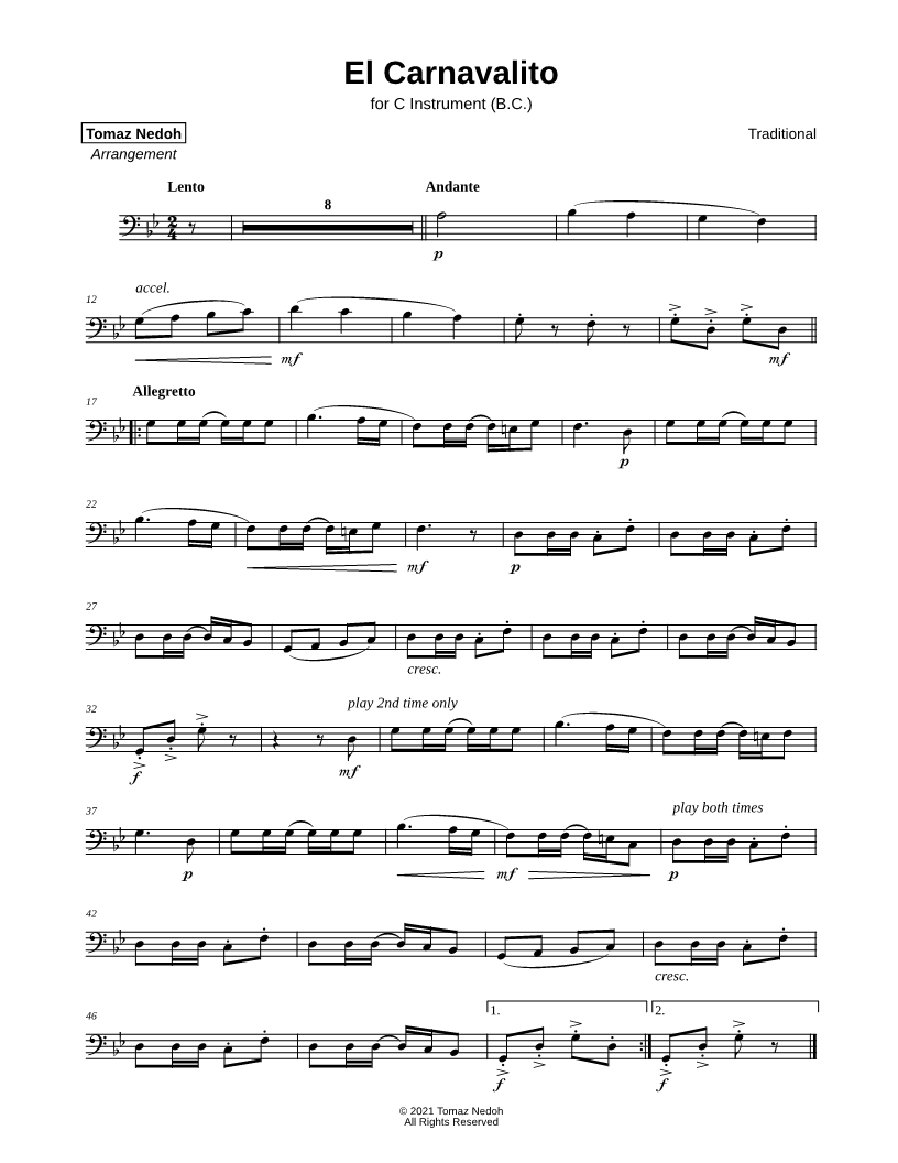 Collection: El Carnavalito - Bass Clef Instrument & Piano |