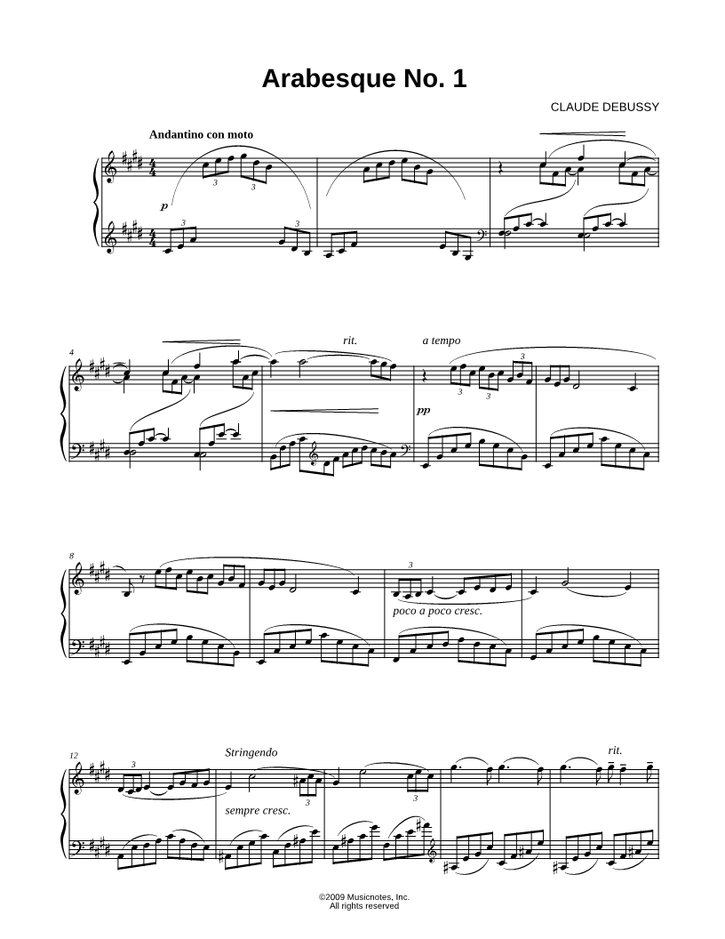 1. Arabesque No. 1 (click here to preview and play this piece) Composer: Scored For:Instrumental Solo Instrument:Piano Number of pages:5 Click here to purchase this piece separately for $5.99 |