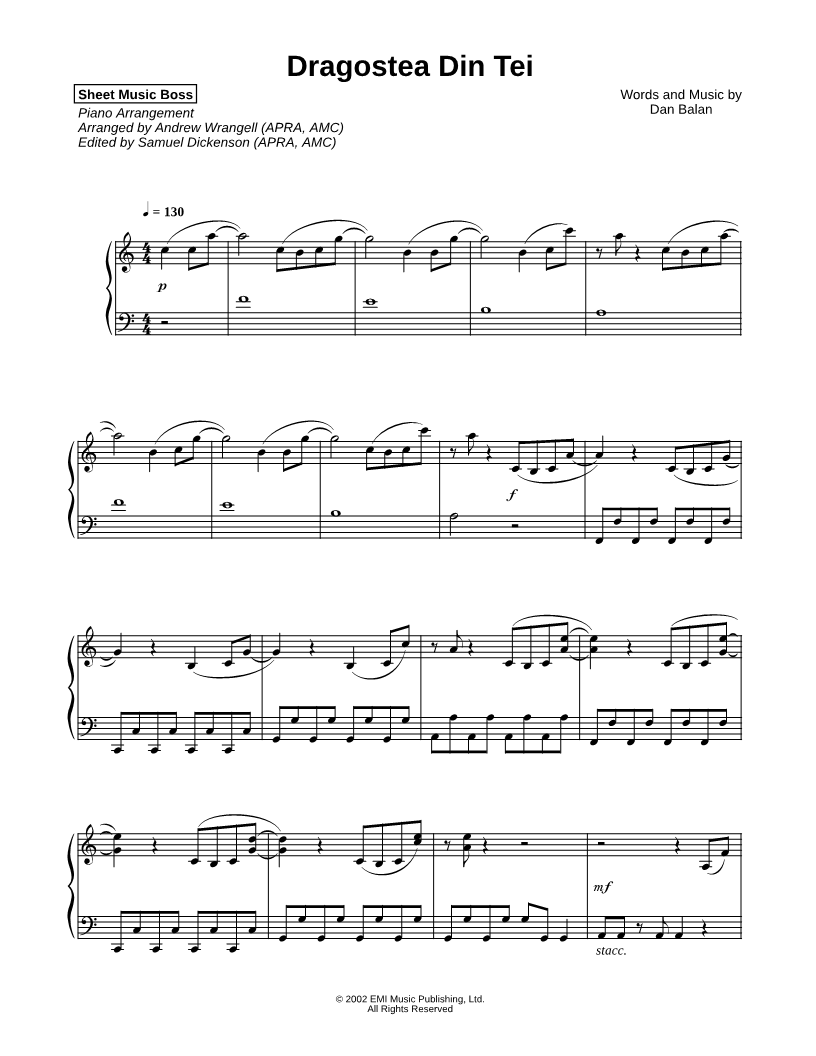 1. Dragostea Din Tei (click here to preview and play this piece) Performers: Composer: Lyricist: Scored For:Instrumental Solo Instrument:Piano Number of pages:6 Click here to purchase this piece separately for $9.99 |