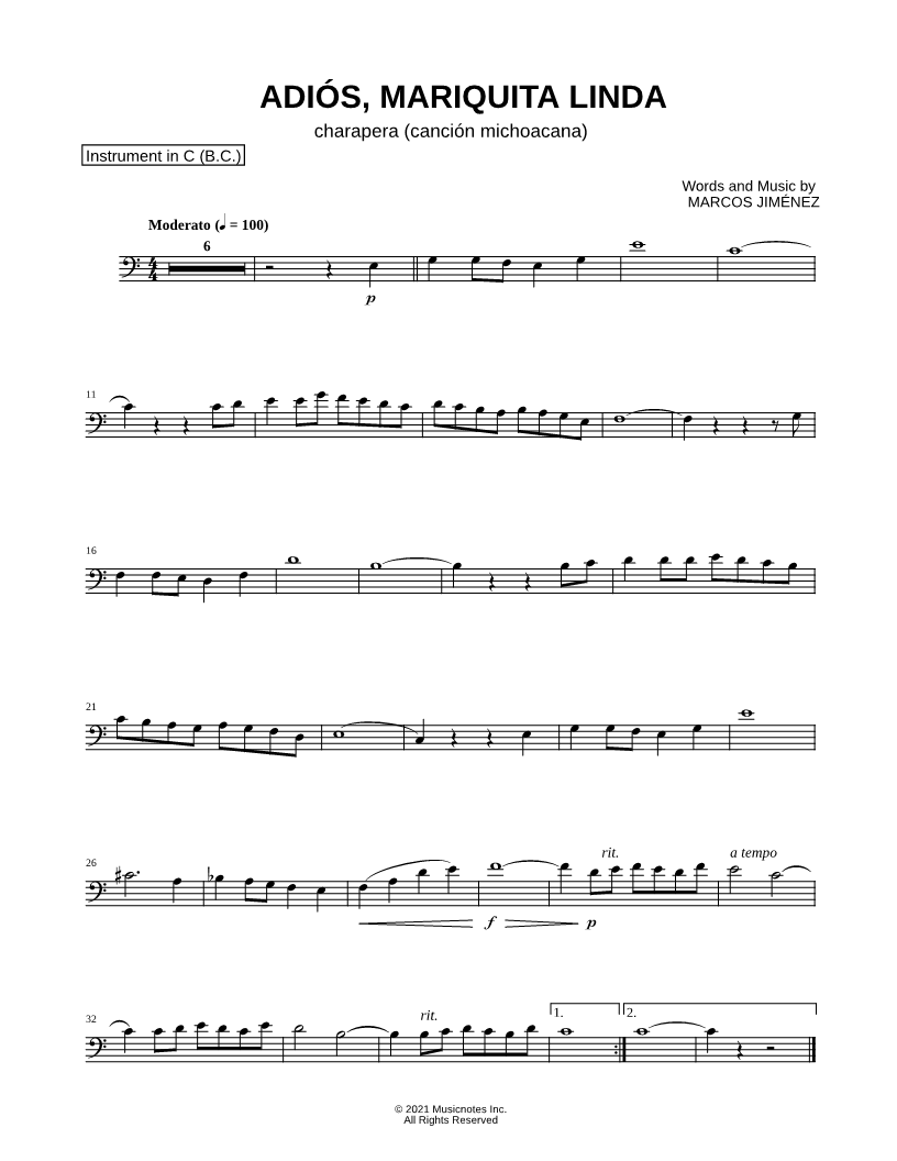 Collection: Adios, Mariquita Linda - Bass Clef Instrument & Piano |