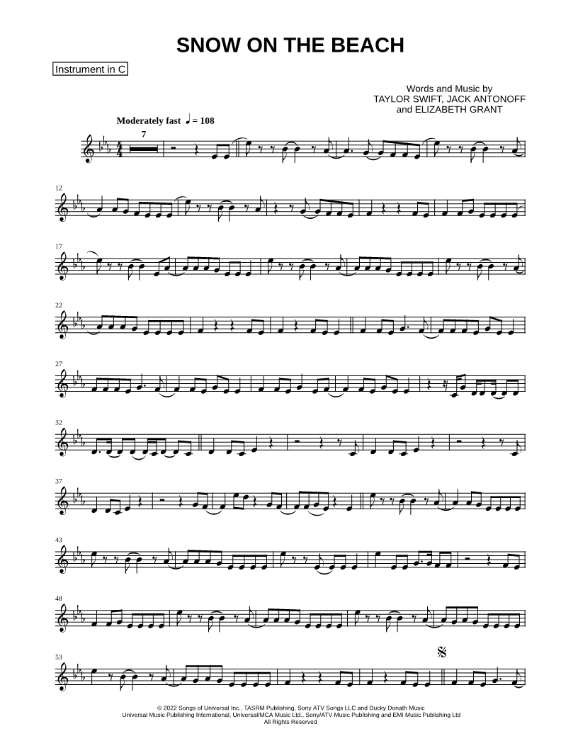 1. Snow on the Beach - C Instrument (click here to preview and play this piece) Performers: Composers: Lyricists: Scored For:Instrumental Solo and Instrumental Part Instruments:C Instrument, range: C4-Eb5, Flute, Oboe, Violin and Recorder Number of pages:2 Click here to purchase this piece separately for $4.99 |