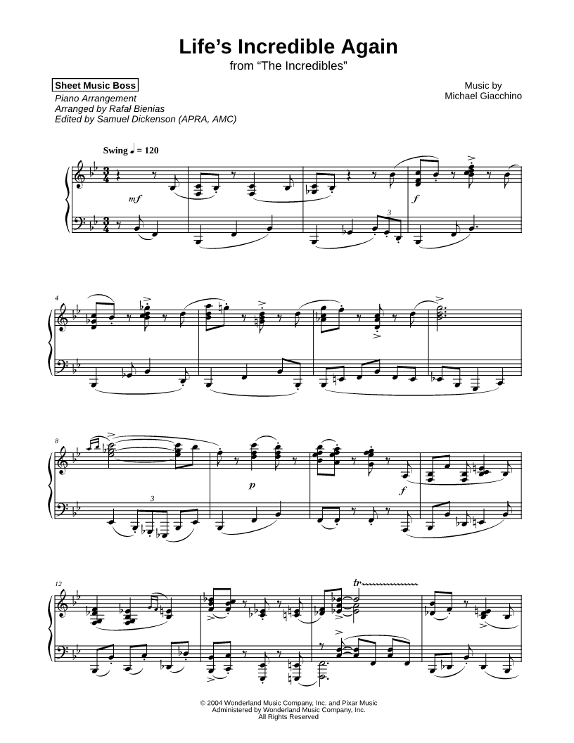 1. Life's Incredible Again (click here to preview and play this piece) Performer: Composer: Scored For:Instrumental Solo Instrument:Piano Number of pages:3 Click here to purchase this piece separately for $9.99 |