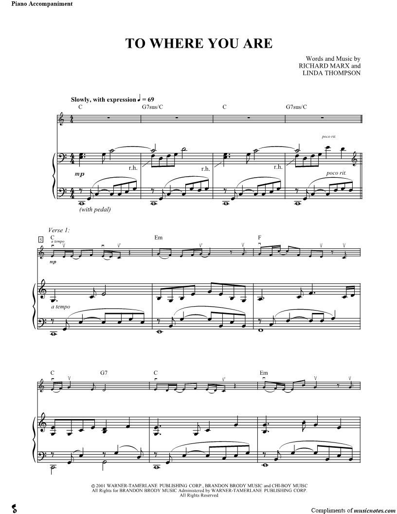 1. To Where You Are (click here to preview and play this piece) Performer: Composers: Lyricists: Scored For:Solo & Accompaniment Instrument:Piano Accompaniment Number of pages:4 Click here to purchase this piece separately for $4.99 |