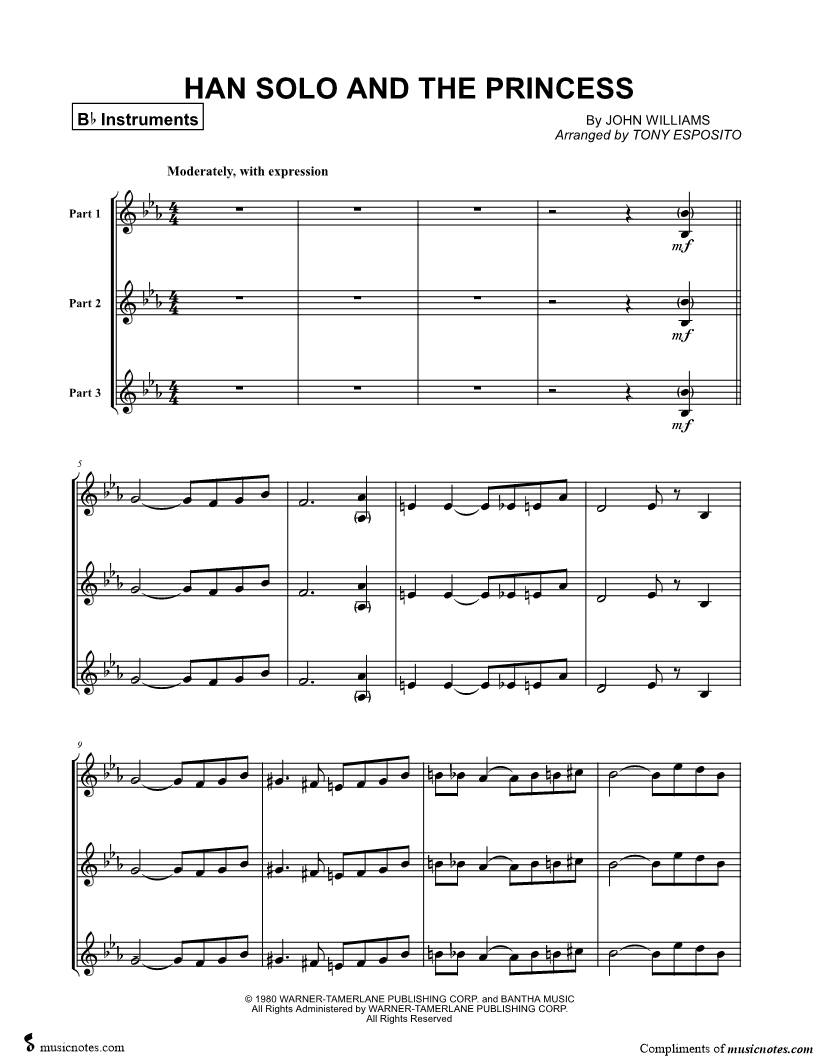 Collection: Han Solo and the Princess - Bb Instrument Trio & Piano Accompaniment |